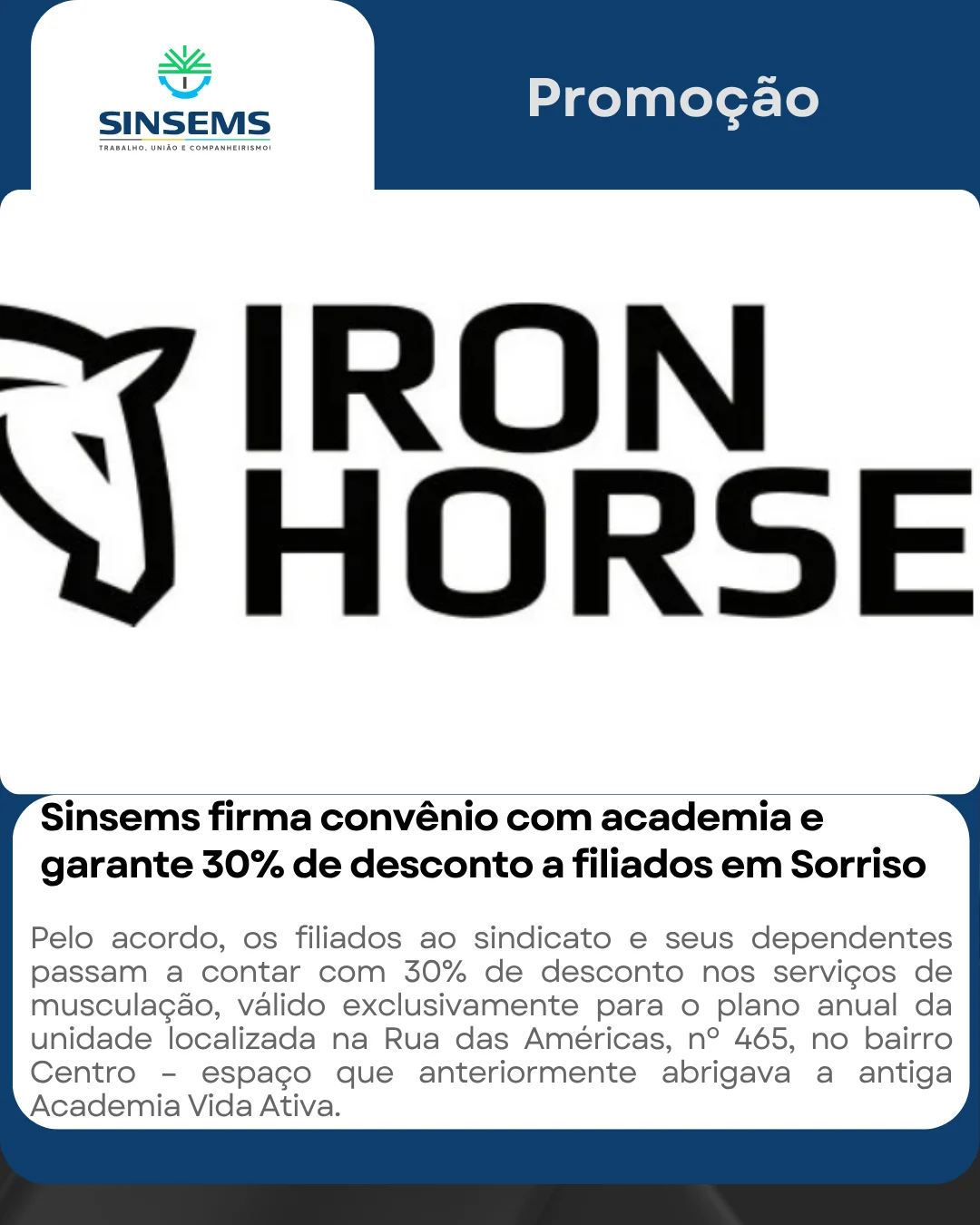 Com o objetivo de ampliar os benefícios oferecidos aos servidores públicos municipais, o Sinsems – Sindicato dos Servidores Públicos Municipais de Sorriso firmou um novo convênio com a academia Academia Iron Horse Centro.